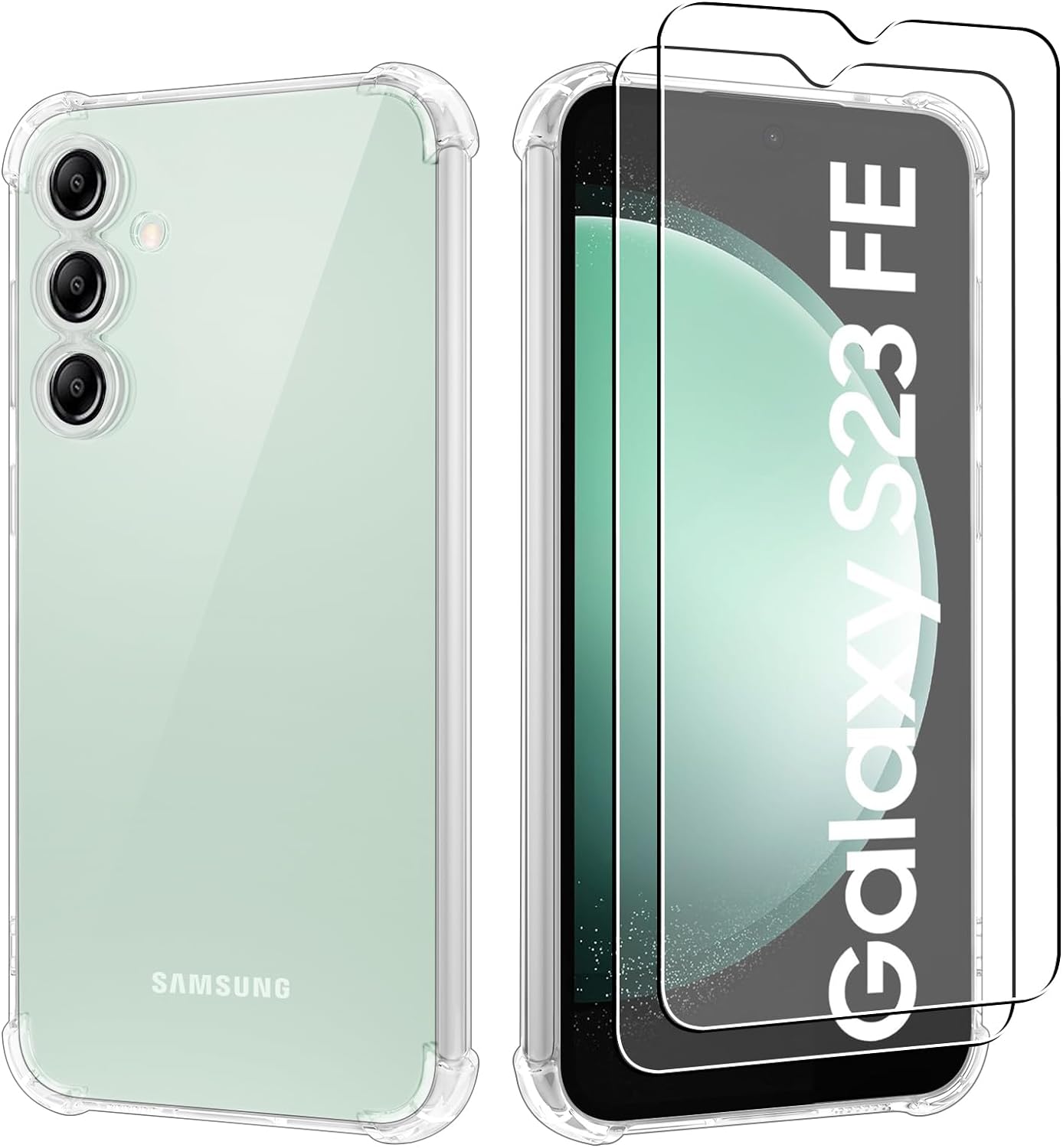iCatchy Case for Samsung Galaxy S23 FE, Shockproof Back Phone Cover with 2-Pack Tempered Glass Screen Protector, Anti-Scratch Clear Back – Slim fitted design Lightweight Impact protection. You can use all its features while your mobile is in case because these cases are made to measure your phone, so won’t interfere in its features e.g. Camera, Charging Port, Volume buttons, Speakers etc. Your best phone with this slim and stylish housing bumps, this cover fits perfectly for your phone.